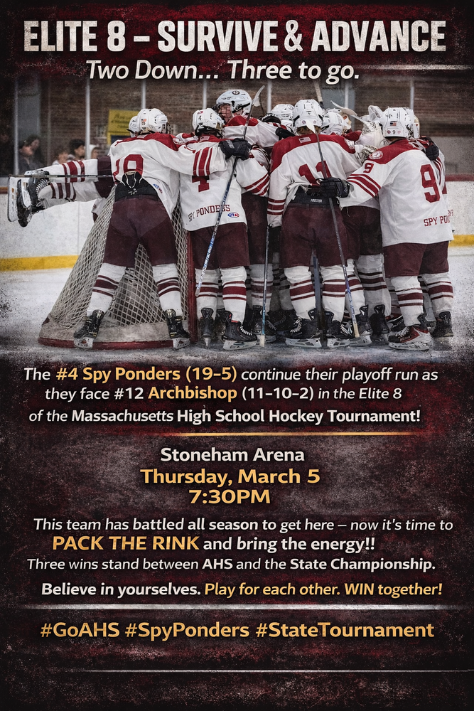 Congratulations to the AHC Bantam team on winning the 2025 Winter Classic Tournament!! The tournament featured four very evenly matched teams in Lexington-Bedford, South Boston, and St. Agnes School, which competed in a jamboree-style tournament with a series of 22-minute games. The AHC Bantams started the round-robin play very slowly, going 0-2-1 in the first three games, which were all closely contested battles. However, in the single elimination portion of the tournament, the team pulled together to bury South Boston, 7-1 in the semi-final, led by Dante Cusanno in net, and Sri Yarlagadda and Loki Ranta up-front. In the Championship game, AHC and SAS traded goals in regulation, then went into a 3v3 overtime, where Luke Palmteer scored the game winner, going 5-hole on a rush from the outside! Everyone on the team contributed to the success in the tournament and showed a lot of resilience in persevering through the Championship game!!